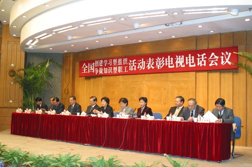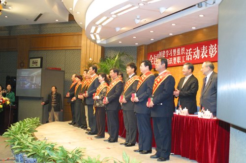 教育部副部長吳啟迪宣讀了全國總工會、中央文明辦等十部委《關于表彰2005年度全國學習型組織、知識型職工的決定》。寶山鋼鐵股份有限公司寶鋼分公司等10家單位獲得“全國學習型組織標兵單位”稱號,滄州供電公司等10家單位獲得“全國學習型組織優秀單位”稱號,首鋼等76家單位榮獲“全國學習型組織先進單位”稱號;譚麗麗等10人榮獲“全國知識型職工標兵”稱號,張旭等80人榮獲“全國知識型職工先進個人”稱號。