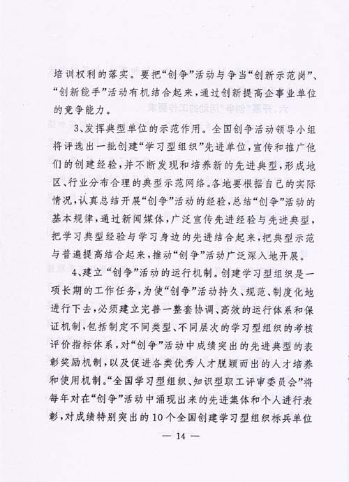 關于印發(fā)《關于開展全國“創(chuàng)建學習型組織,爭做知識型職工”活動的實施意見》的通知