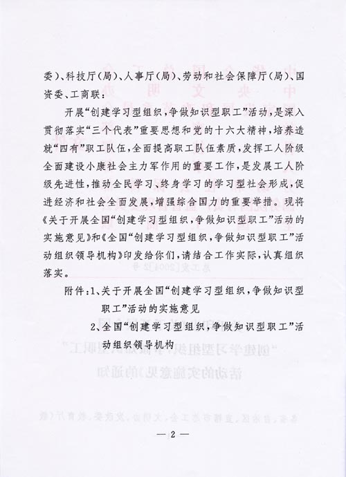 關于印發《關于開展全國“創建學習型組織,爭做知識型職工”活動的實施意見》的通知