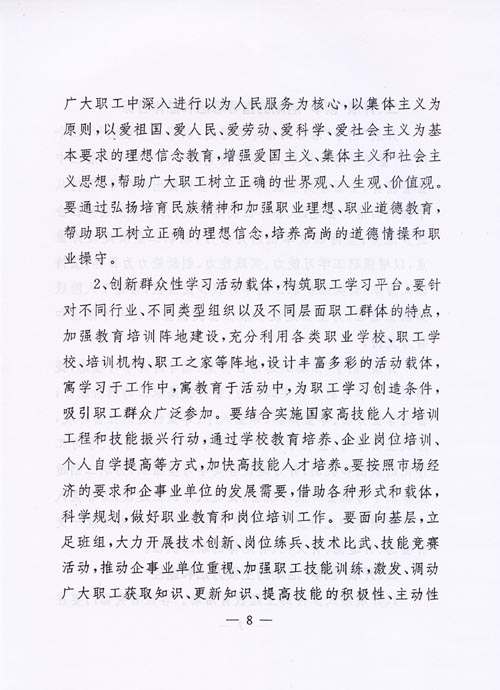 關于印發《關于開展全國“創建學習型組織,爭做知識型職工”活動的實施意見》的通知