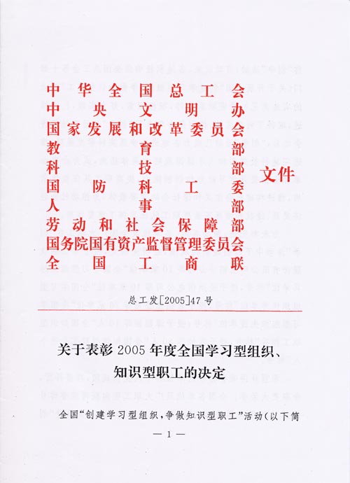 關于表彰2005年度全國學習型組織、知識型職工的決定