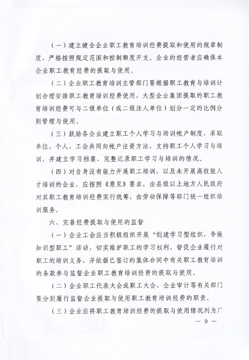 關于印發《關于企業職工教育經費提取與使用管理的意見》的通知