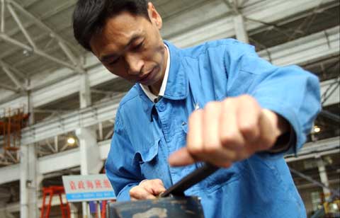 袁政海班組主要負(fù)責(zé)江鈴模具的生產(chǎn)制造,并承擔(dān)前方車間模具維修和保養(yǎng)工作。班組現(xiàn)有員工17名,平均年齡35歲,其中黨員10人,高級技師8人,技師3人,16人擁有除鉗工外的4種以上技能上崗證。(工人日報(bào)社許之豐攝影)