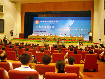 此次論壇由中華全國總工會、全國“創(chuàng)爭”活動指導(dǎo)協(xié)調(diào)小組主辦,來自全總、中央文明辦、國家發(fā)改委、教育部、科技部、國防科工委、勞動和社會保障部、人事部、國資委、中國科協(xié)、全國工商聯(lián)等全國“創(chuàng)爭”活動領(lǐng)導(dǎo)小組成員單位的有關(guān)領(lǐng)導(dǎo)出席了在人民大會堂舉行的開幕式。中華全國總工會副主席、書記處第一書記孫春蘭在開幕式上發(fā)表了題為《創(chuàng)新學(xué)習(xí)促進發(fā)展努力建設(shè)一支高素質(zhì)的職工隊伍》的主題演講,并點擊開通了我國首個全國性職工學(xué)習(xí)網(wǎng)絡(luò)資源平臺——“中華職工學(xué)習(xí)網(wǎng)。全國各省、自治區(qū)、直轄市“創(chuàng)爭”活動領(lǐng)導(dǎo)機構(gòu)的負(fù)責(zé)人,國內(nèi)著名專家學(xué)者,以及在全國“創(chuàng)爭”活動中涌現(xiàn)出來的先進個人、優(yōu)秀組織的代表共500多人參加論壇。