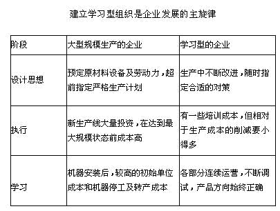 建立學習型組織是企業發展的主旋律 張聲雄:學習型組織的建立,是企業一種核心能力的形成。反過來,核心能力積累的關鍵也就在于創建學習型組織,在不斷修煉中增加企業的專用性資產、不可模仿的隱性知識等.在美國排名前25位的企業中,80%已經按照"學習型組織"管理理論進行了企業再造;在世界排名前100位的企業中,已有40家 (包括福特、微軟等)公司進入了建立學習型企業的軌道;我國的寶鋼集團、海爾集團等部分大型企業集團,也開始注重學習型企業管理模式,不斷地培養和積累企業的核心能力。因此,建立學習型組織已成為企業發展的主旋律,對于21世紀的企業來說勢在必行,從圖表中,我們可以輕而易舉地找到答案。美國著名未來學家約翰·奈斯比特早在1983年就大膽預言:"我們已經進入了一個以創造和分配信息為基礎的經濟社會。"隨著科學技術(尤其是計算機、通訊等信息技術)的迅猛發展、因特網的橫空出世和飛速壯大,信息社會已經在我們眼前,越來越多的企業意識到:組織學習對于現代企業至關重要。它不僅是企業的一項重要職能,更是為全面提升企業競爭力提供了先決條件,并成為組織生存和發展的前提與基礎,對于企業的成敗興衰具有舉足輕重的影響。