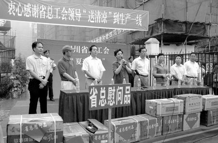 “一定要善待農民工!”“要切實保障他們的工作、生活、勞保、工資等權益!”這是7月31日省委常委、省總工會主席李登菊和成都市總工會領導一行前往商品房建筑工地為農民工送清涼時對建設投資方、施工單位和工會組織反復叮囑的一句話。 “工會的慰問品來啦!”悶熱的上午,在成都市建工集團六公司承建的商品房“天空城”建設工地上的農民工立即高興地聚攏在一起,分享著省、市總工會為他們帶去的清涼消暑的藥品、飲品和一些日用品。 李登菊在講話中,代表省委、省政府和省總工會向農民工兄弟姐妹們親切問候,表揚他們為工業強省和城市發展付出了心血和汗水,并告訴農民工們:在外務工一定要多學習,學會用法律武器維護自己的合法權益,一旦遇到欠薪和困難,一定記住來找工會!李登菊在民工宿舍門前和一名叫李奇會的女鋼筋工擺龍門陣,問收入、勞保、休假等細節問題,女工靦腆地回答著。當李登菊詢問施工方如何考慮農民工家屬探親問題時,施工方經理爽快地答應:我們下來就安排設“探親房”!李登菊當場要求各級工會組織一定要主動維權、依法維權,為農民工排憂解難。 在中鐵二局承建的龍泉某建筑工地,李登菊還囑咐農民工們注意提高技能等多方面的素質,提升自己的競爭力,以適應社會發展需要,平時,要多和家里老人、妻子、兒女保持聯系,有空打個電話,每月寫封信回家,別讓留守的親人牽掛,建立一個穩定和諧的家庭。 在工地,李登菊和成都市委常委、市總工會主席包惠,省總工會副主席慕竹平,市總工會副主席陸群等工會干部,仔細察看了農民工們工作生活的食堂、澡堂、職工夜校、活動室等場所,并聽了投資、施工方和工會組織在農民工權益維護方面的匯報,并提出許多具體要求。 此次“送清涼”活動是省總今年夏季實施的一項重要工作,得到了各地黨政和企業黨政的大力支持。 |