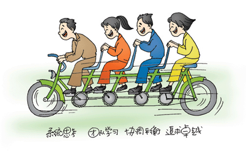 團隊學習就是要有集體觀。要善于通過反思、反饋、共享系統,培育同志之間,部門之間乃至企業協同體之間主動分享、高度信賴的關系和協同能力。