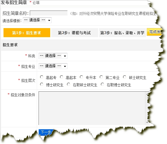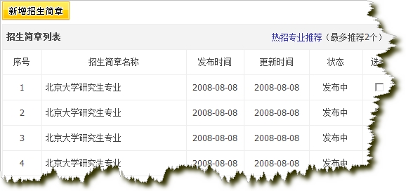 2)點擊“發布資源”欄目中的“學歷教育招生簡章”按鈕